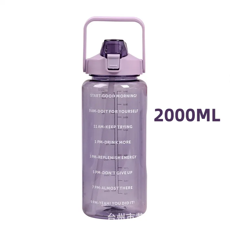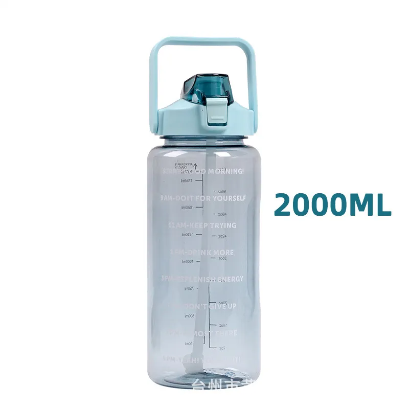 Spot 2000ml rappel boire une tasse d'eau de sport en plastique avec une bouteille d'eau à échelle tasse d'espace portable bouteille d'eau de grande capacité